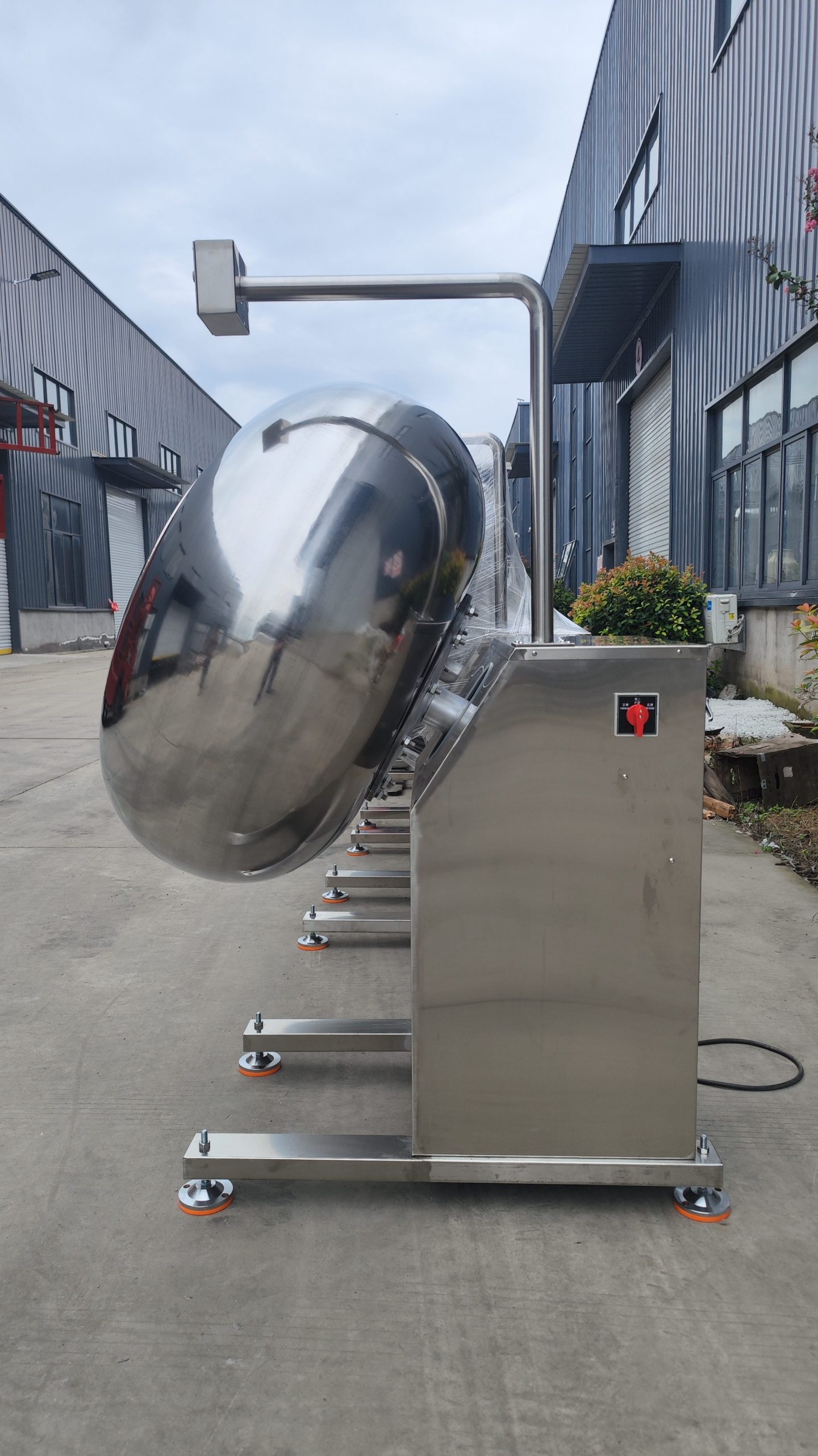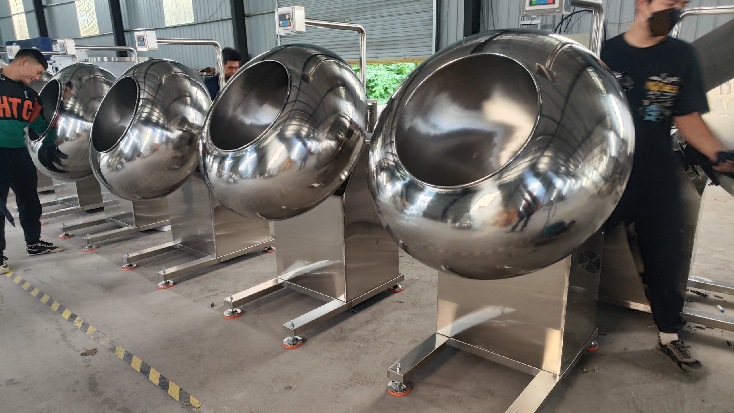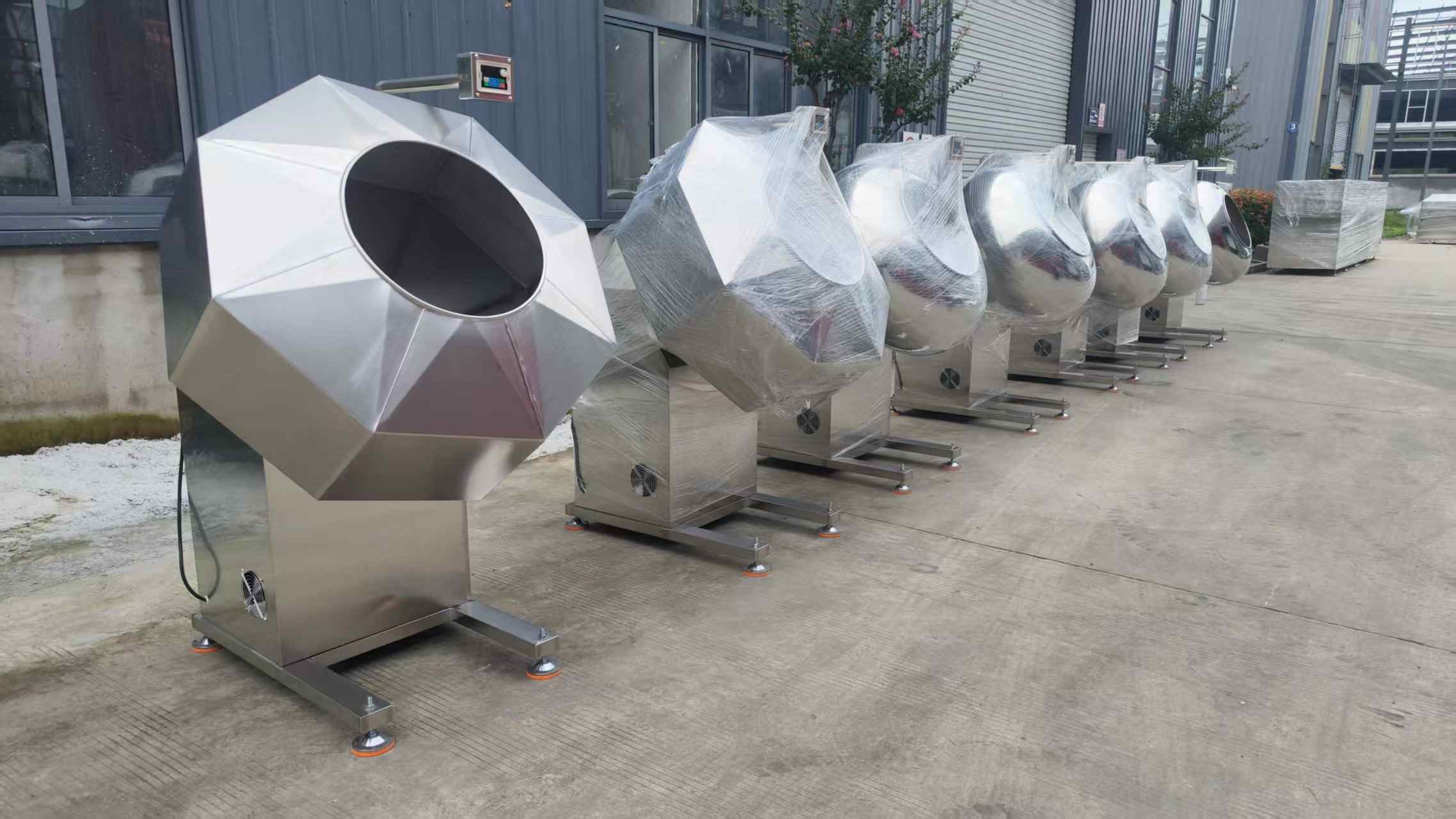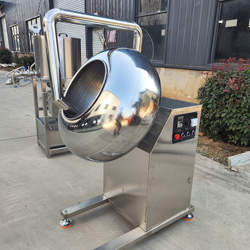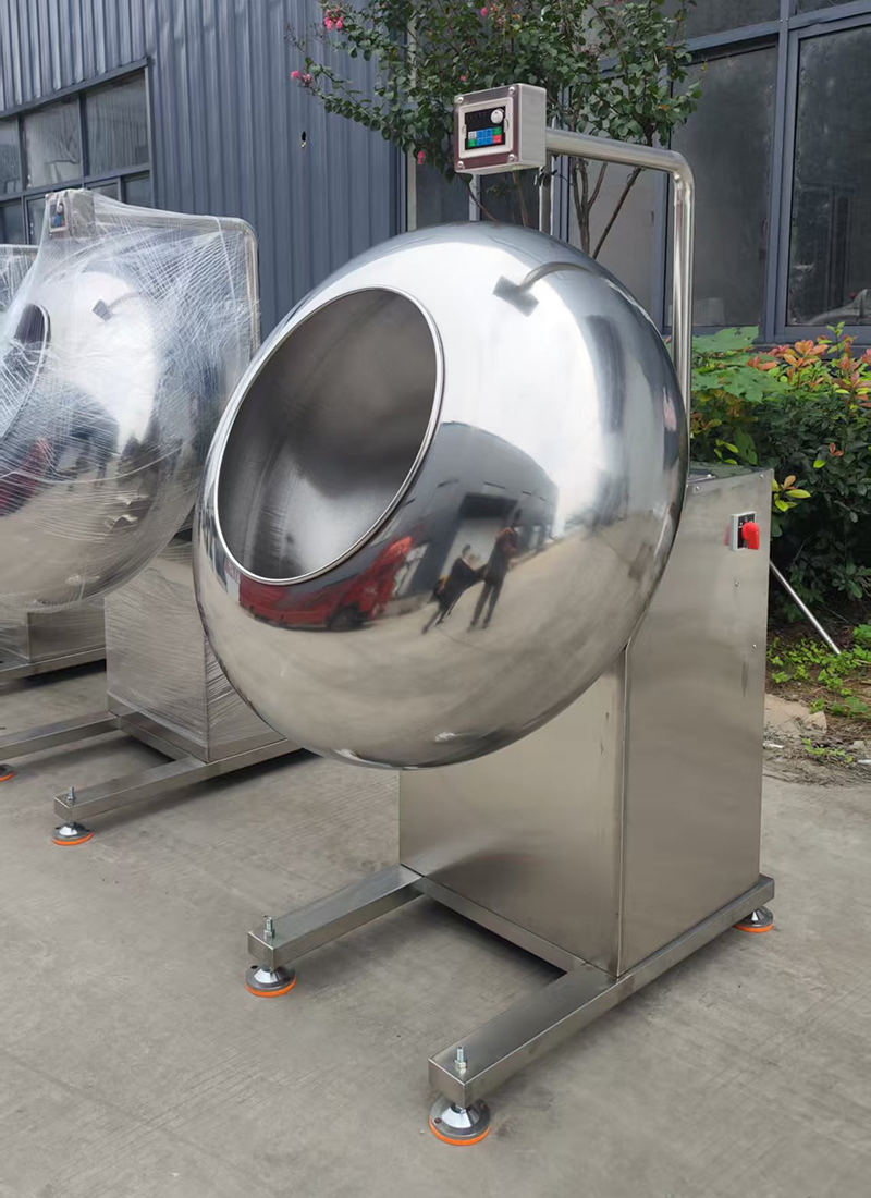 The chocolate coating pan is made of stainless steel. Simple operation, reliable performance, easy cleaning and maintenance, and high efficiency. It can be customised with a frequency inverter for adjusting the rotating speed.