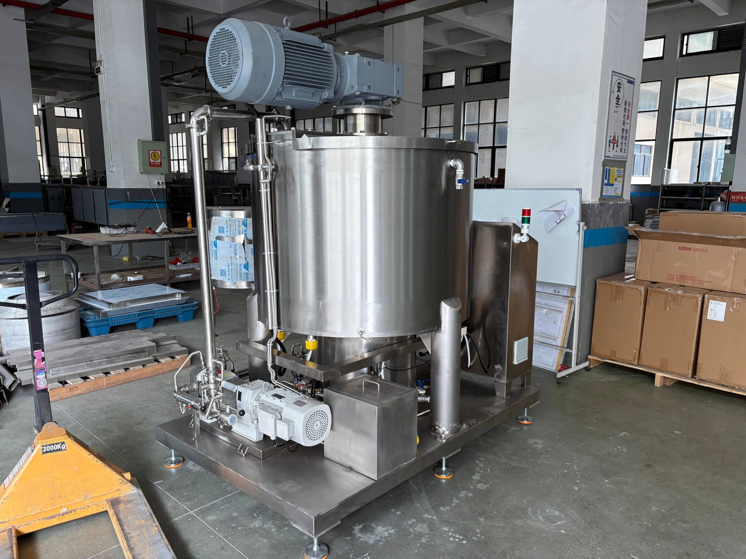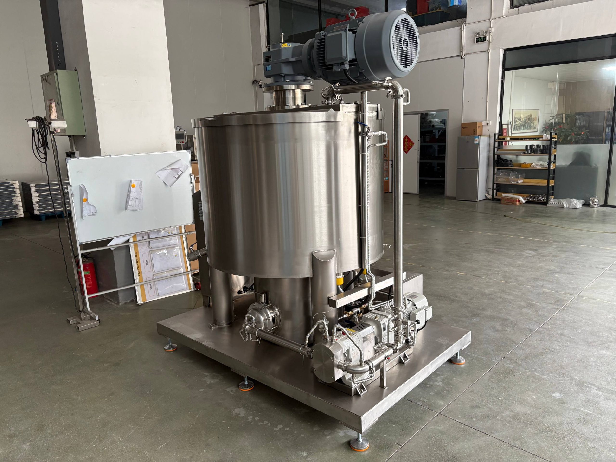 this machine is mainly used for grinding chocolate paste, but also suitable for grinding jam, peanut butter and other liquid oil. It is used to mix cocoa powder, cocoa liquid blocks, sugar, milk powder and other raw materials to grind them into chocolate paste. The equipment has been widely recognized by domestic and foreign customers. The equipment is used with 10mm steel balls, and is equipped with a chocolate rotor pump, during the grinding process, the slurry is continuously circulated internally from the bottom up, so that the grinding is more uniform. After 5-8 hours of grinding, multiple cycles and agitation at different stages of speed make the friction between the steel balls, the cocoa paste is continuously ground to a finer molecular state, with a fineness as low as 20-25 microns