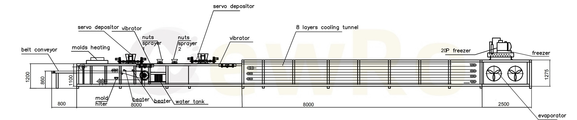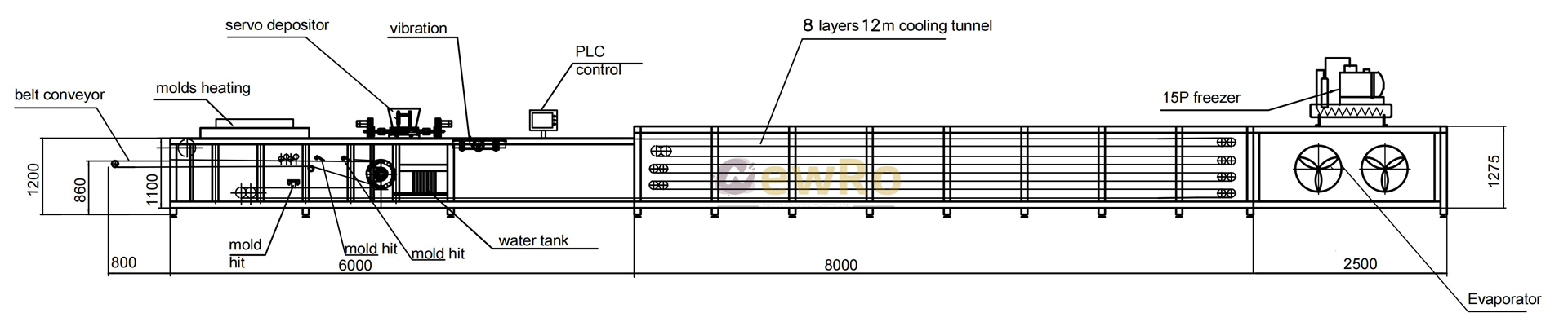 Chocolate moulding line's depositor—the machine that precisely pours or injects the molten ingredients into the moulds. These technologies allow manufacturers to create complex, multi-textured, and multi-flavored chocolates in a single, continuous line without the need for multiple cooling cycles between layers.